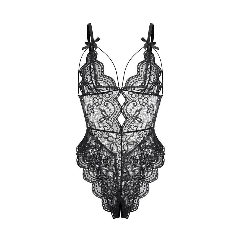 Erotic Underwear Sexy Deep V Lace Perspective Temptation Pure Desire One-piece Open Crotch Uniform Women's Suit 4069